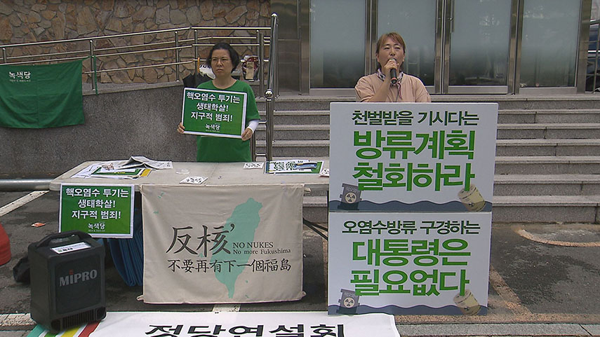 일본이 후쿠시마 원전의 핵 오염수를 바다에 내보내기 시작한 이튿날.아침부터 국민의힘 대구시당 앞에 시민단체 활동가들이 마이크를 들고 섰습니다. '핵 오염수 방류는 생태 학살이자 지구적 범죄'라고 적힌 손팻말도 세워졌습니다. 핵 오염수 방류에 동의한 윤석열 정부와 여당을 규탄하며 48시간 동안 철야 농성을 시작...