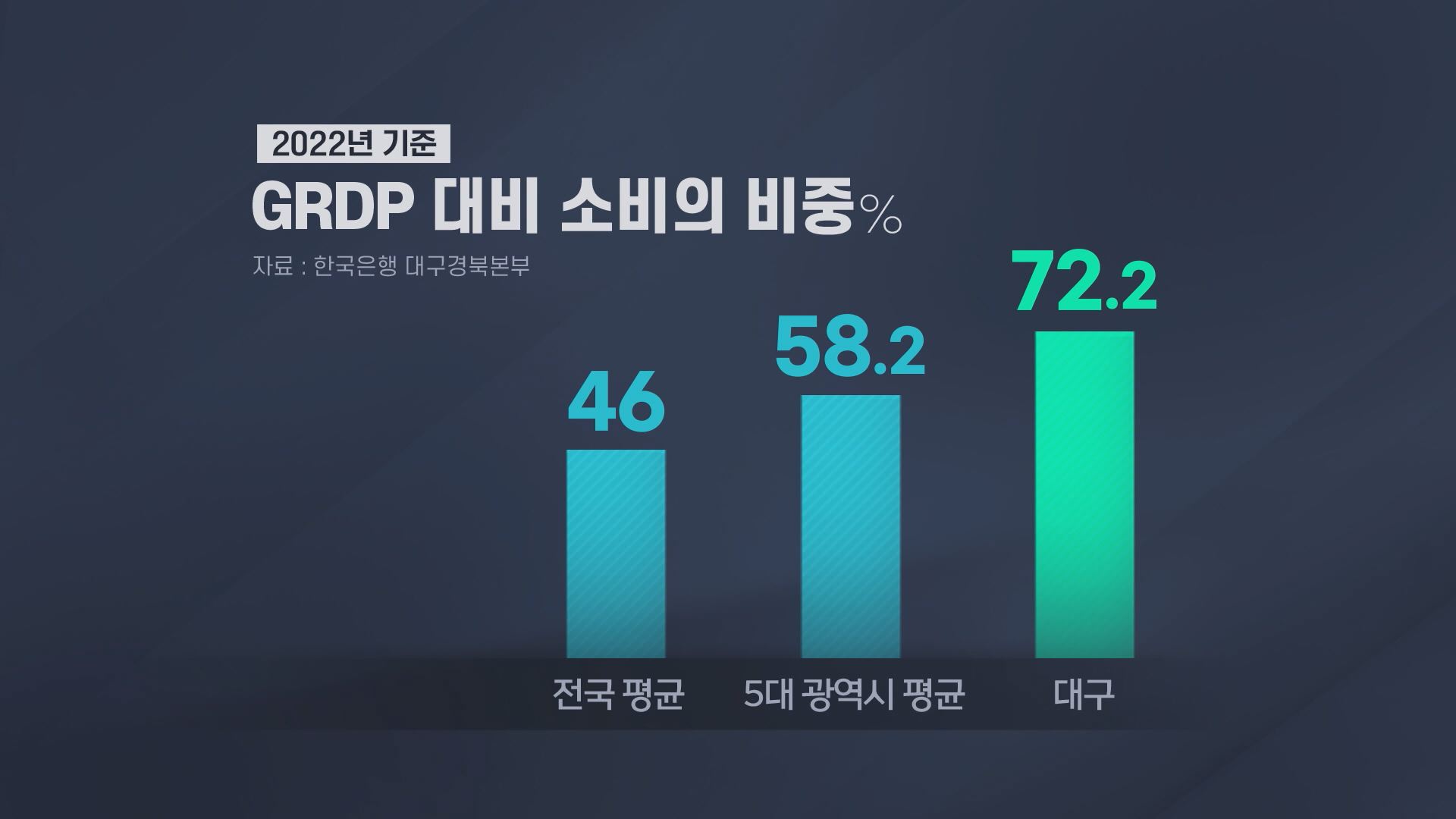 ◀앵커▶대구는 GRDP가 전국 꼴찌 수준이다 보니 생산도 투자도 낮은 수준입니다.하지만 전통적인 소비 도시로서 기능을 유지하고 있는데 소비만큼은 역외 유출보다 역내 유입이 더 많다는 분석 결과가 나왔습니다.한국은행 대구경북본부는 소비를 더 키워서 생산과 투자를 늘리는 전략이 필요하다고 조언했습니다.취재기자 ...