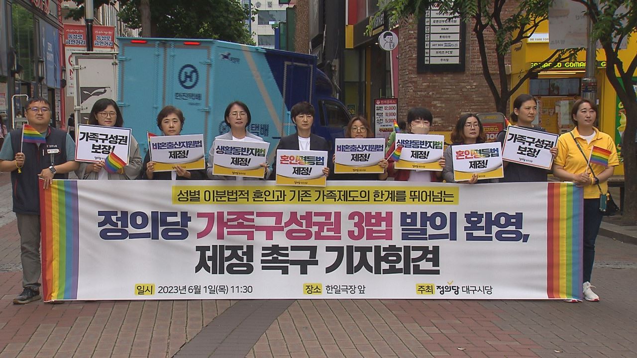 ◀앵커▶남녀가 만나 결혼해 가정을 이루는 것만 '정상 가족'으로 여기는 생각을 이제는 바꿔야 한다는 목소리가 나오고 있습니다.그런 의미에서 5월 31일 정의당 장혜영 국회의원이 다양한 가족의 형태를 인정하는 '가족 구성권 3법'을 대표 발의했습니다.자세한 내용 취재 기자와 알아봅니다. 권윤수 기자, 5월 31일 법률안...