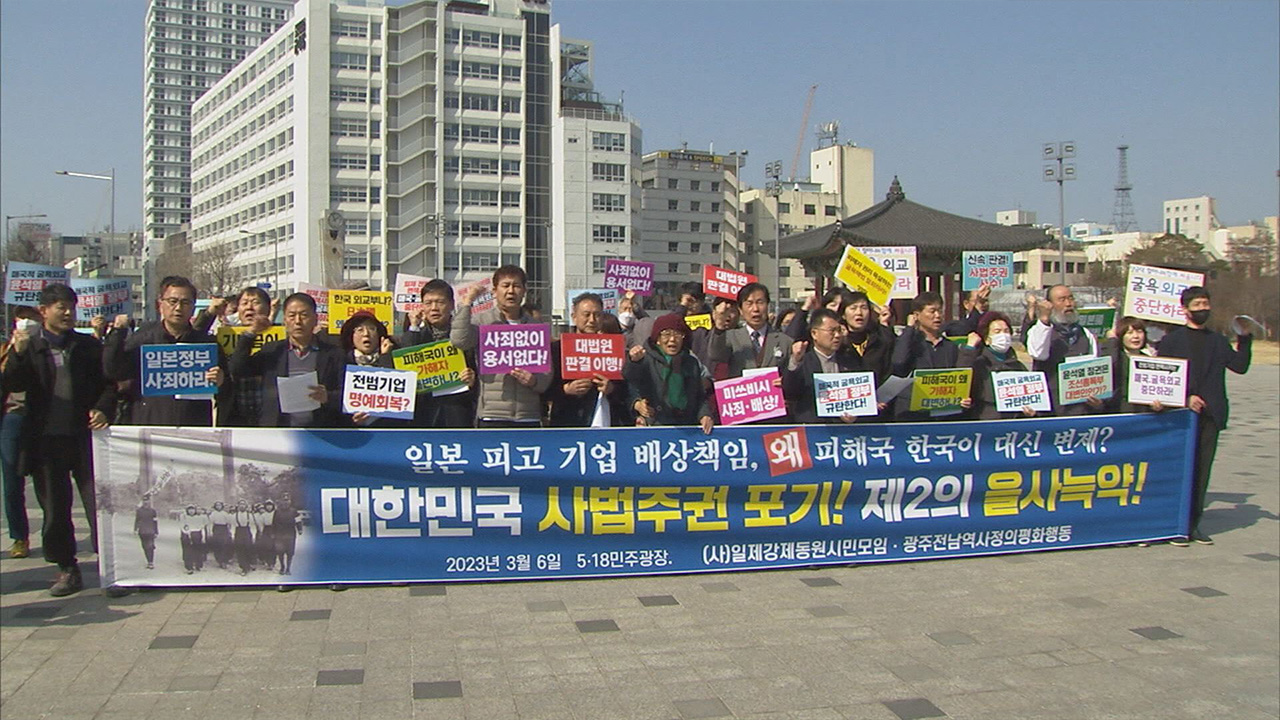 ◀앵커▶일제 강점기 때 강제로 끌려가 노역해야 했던 강제노역 피해자, 이루 다 셀 수가 없습니다.목숨을 잃은 분들도 한두 명이 아닙니다.오랜 세월 고통 속에 지내던 분들 가운데 일부가 법적 다툼 끝에 2018년 대법원에서 '일본 전범 기업이 배상하라'는 판결을 받았습니다.일본은 적반하장으로 배상은커녕 반도체 소부장...