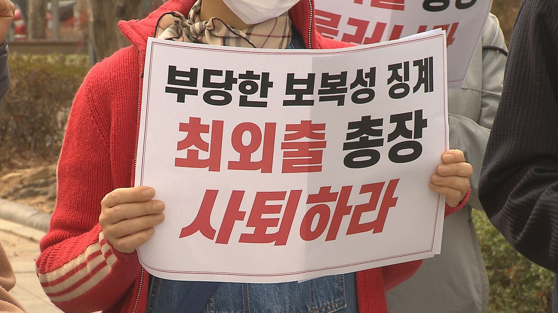 ◀앵커▶영남대학교가 학내 민주화를 주장하던 교수회 임원에게 중징계를 내렸는데, 교육부 교원소청심사위원회에서는 징계 처분 취소 결정을 내렸습니다.그런데 학교 측은 여기에 불복하고 행정소송을 제기했습니다.징계가 부당하다며 철회를 촉구해온 대책위는 비판의 목소리를 막기 위한 폭력이라며 총장 사퇴를 요구하는 ...