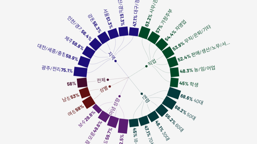 A Flourish hierarchy chart이재명 대통령의 국정 수행 지지율이 4주 만에 50% 중반대로 회복했다는 여론조사 결과가 나왔습니다.리얼미터가 에너지경제신문의 의뢰로 9월 1~5일 전국 18세 이상 유권자 2,519명을 대상으로 조사한 결과, 이 대통령의 국정 수행을 긍정적으로 평가한 응답자는 56%로 전주보다 2.4% 포인트 올...