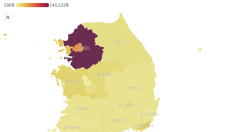 A Flourish map앞으로 2년간 대구와 경북에서 모두에서는 모두 3만 1천여 가구가 입주할 예정입니다.한국부동산원과 부동산R114가 공동으로 생산한 '공동주택 입주 예정 물량 정보'에 따르면 2025년 7월부터 2027년 6월까지 2년간 대구에는 1만 8,585가구가 입주할 예정입니다. 경북에선 1만 2,818가구가 입주할 예정입니다...