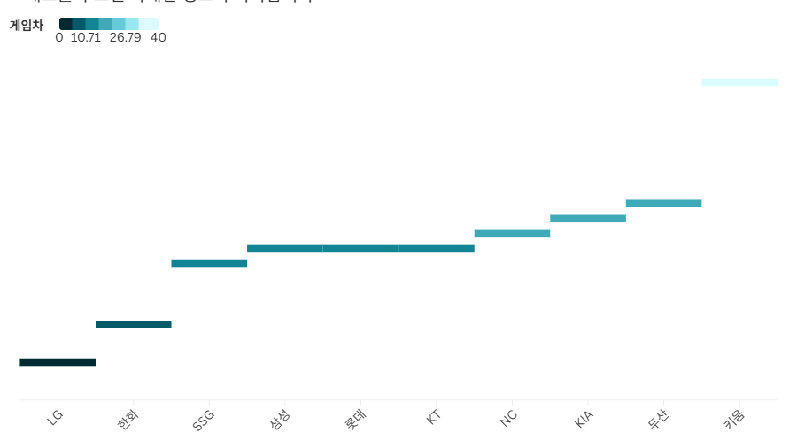 A Flourish heatmap불과 보름 전까지 8위로 가을야구는 사실상 힘들어졌다는 평가를 받았던 삼성라이온즈가 행운까지 더해지며 단독 4위에 올라섭니다.9월 4일 저녁 대구삼성라이온즈파크에서 펼쳐질 예정이었던 2025 신한 SOL 뱅크 KBO리그 키움 히어로즈와의 맞대결이 비로 취소된 삼성은 같은 시간, 수원에서 펼쳐진 KT...