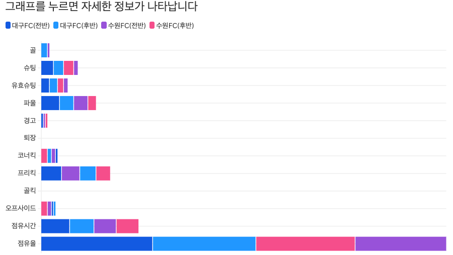 A Flourish chart창단 최다 타이 기록인 16경기 무승이 이어지던 대구FC가 119일 만에 승리를 거뒀습니다.8월 30일 저녁 대구iM뱅크파크에서 펼쳐진 하나은행 K리그1 2025 수원FC와의 28라운드 맞대결에서 대구는 전반 한 골을 내주며 어렵게 경기를 시작했지만, 후반 집중력과 투지를 바탕으로 3득점을 만들며 3-1 승리를 ...
