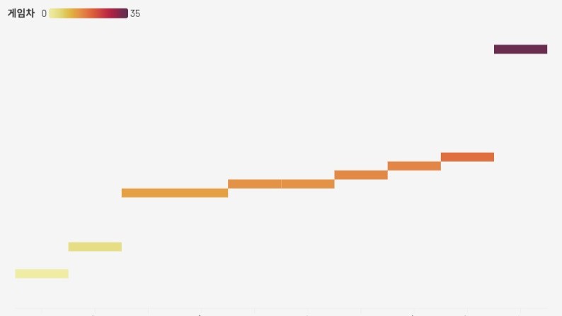 A Flourish heatmap팀당 30경기 안팎을 남겨둔 가운데 선두권과 최하위를 제외한 모든 팀이 순위표가 요동치고 있습니다.지난주부터 연승과 연패가 교차하며 순위 싸움이 치열해진 2025 신한 SOL 뱅크 KBO리그는 중위권에서 격차가 계속 좁혀지는 분위기입니다. 3위까지 올라선 SSG랜더스부터 8위 삼성라이온즈까지 격차는 ...