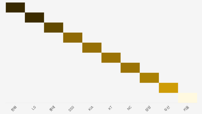 A Flourish heatmap선발 가라비토가 극심한 제구력 난조를 보인 삼성라이온즈가 5연패와 함께 8월의 첫 주를 우울하게 시작했습니다.8월 3일 대구삼성라이온즈파크에서 펼쳐진 2025 신한 SOL 뱅크 KBO리그 LG트윈스와의 주말 3연전 마지막 경기에서 삼성은 경기 초반 2-0으로 앞서갔지만, 5회 초 3실점으로 역전을 허용한 ...