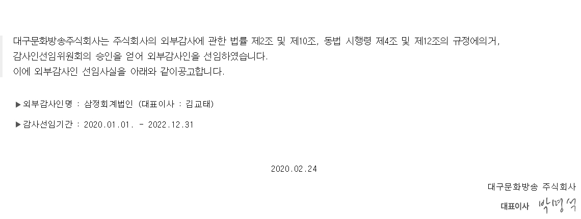 외부감사인 선임 공고